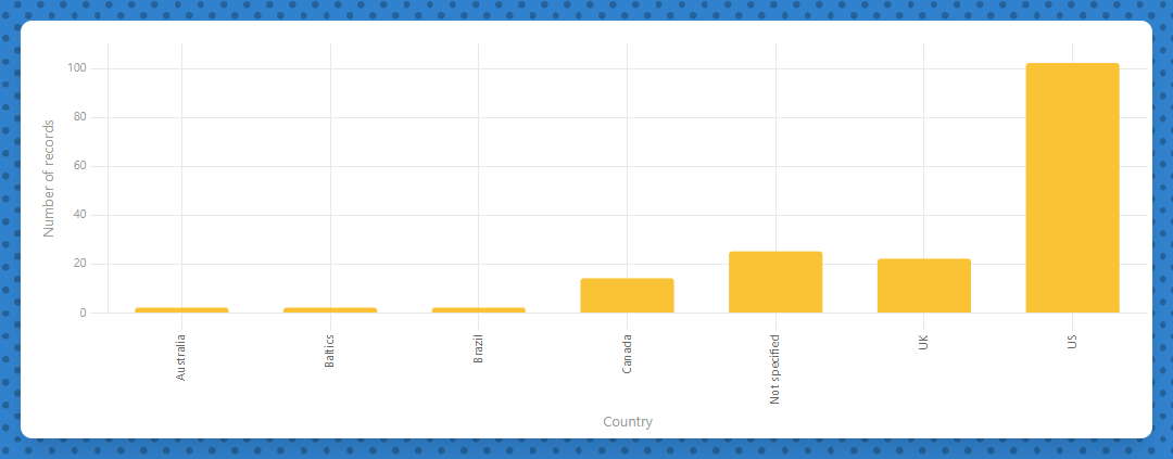 Unsurprisingly, the US has the strongest representation (59% attendees). Followed closely by the UK (13% attendees) and Canada (8%).