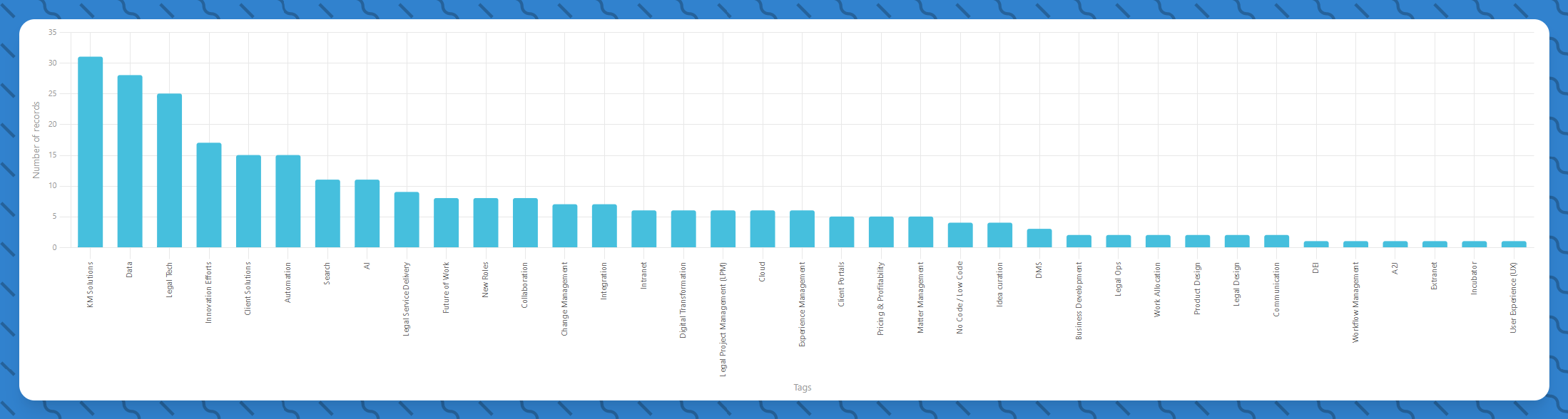 Ultimately, we captured and structured responses from 169 legal innovators. I leveraged these to report on: